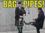 Many years ago in Scotland, after having a few drinks people would play a pub game where they would either punch or grab someone's stomach or genitals in an attempt to force them to burp or fart. And if the burp or fart was audible, everyone in the pub would yell out "Bagpipes!" and then have another drink. This was the precursor to today's musical instrument, the bagpipes.